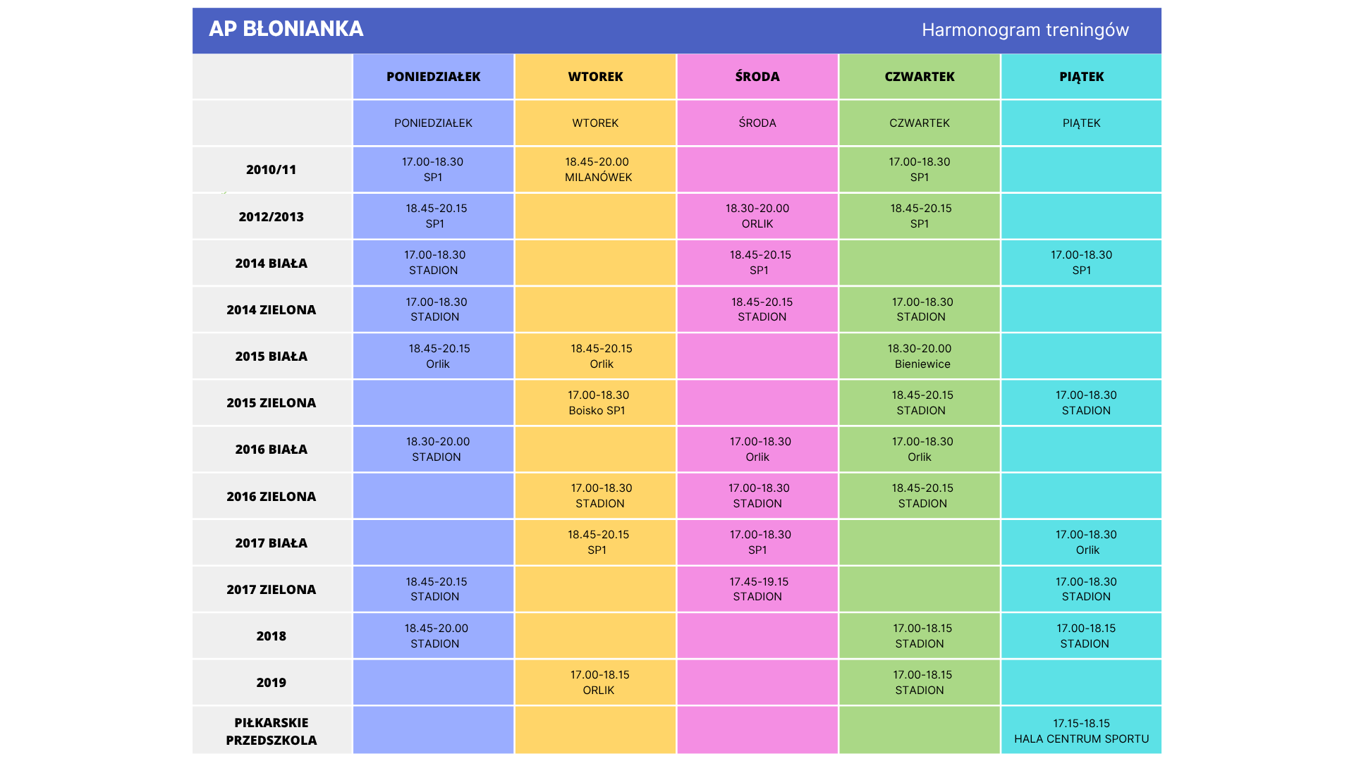 Harmonogram Treningów
